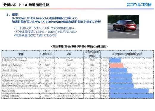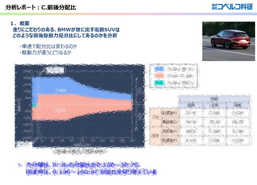測定データをグラフ化、分析、考察し、この車の特徴を掴めるレポートになっています。
