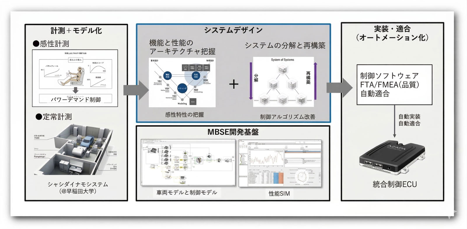 しかし、自動車メーカーではない地域工場が、安全かつ確実なEVを組み上げることは容易ではありません。これを可能にし、 品質とスピードを両立させる裏付けとなるのが、AZAPAの「BEV開発ソリューション」です 。AZAPAの持つ、モデルベース開発プロセスと環境を最大限活用して、開発のフロントローディングを加速させることで、手戻りを防ぎTime to Marketを劇的に短縮します 。試作や実験回数の大幅な削減は、コスト削減と市場不具合の未然防止にも貢献します 。