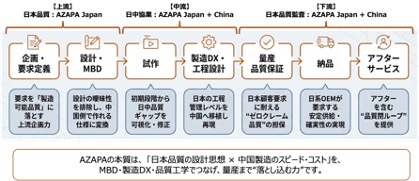 さらにAZAPAは、MBD(Model Based Development)や製造DX、品質工学といった手法を駆使し、「日本品質の設計」と「中国製造のスピード・コスト」を高次元で融合させ、量産まで確実に落とし込む体制をご提供します。